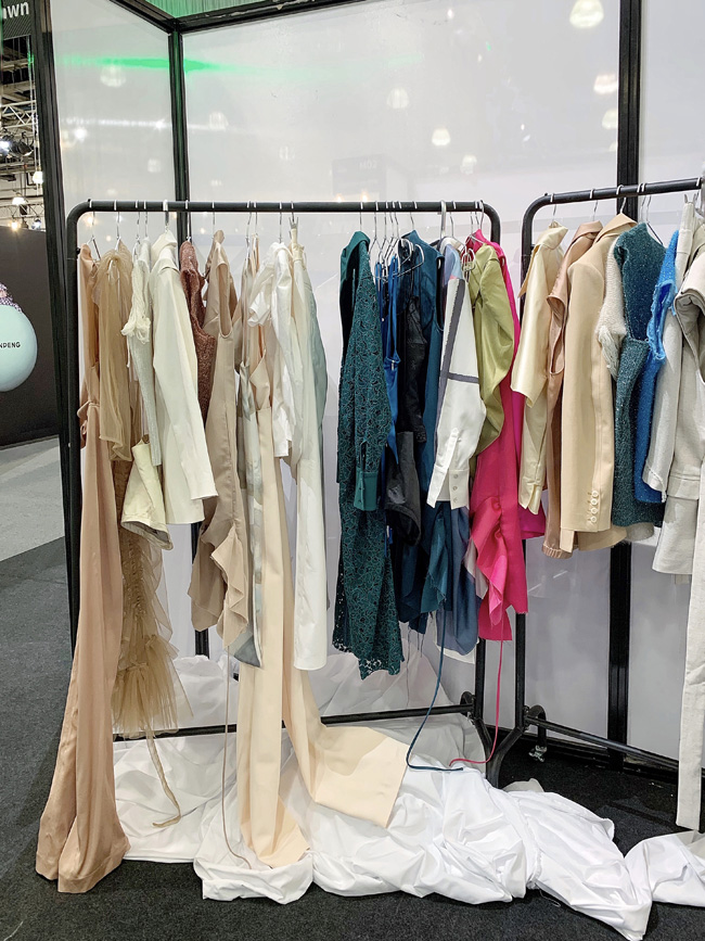 筱琪:因為今年疫情的特殊性,國外買手基本都是“云采購”,基本上我們都在網(wǎng)上聯(lián)系和看款式,國外買手似乎更偏向于大廓形和大膽一些的款式,相較與國內(nèi)能來到我們展位現(xiàn)場看款式的買手來說,國內(nèi)買手還是更偏向時髦同時也適合通勤的款式。